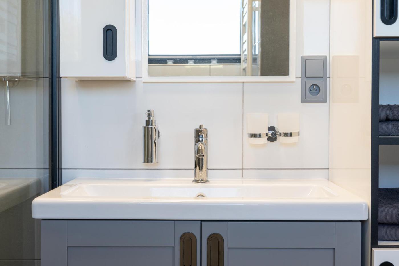 One-Bedroom Apartment. Featuring a private entrance, this air-conditioned apartment consists of 1 living room, 1 separate bedroom and 1 bathroom with a shower and a hairdryer. Guests will find a stovetop, a refrigerator, kitchenware and a microwave in the fully equipped kitchenette. The apartment also offers a barbecue. Boasting a terrace with garden views, this apartment also provides a tea and coffee maker and a flat-screen TV. The unit offers 2 beds. ;