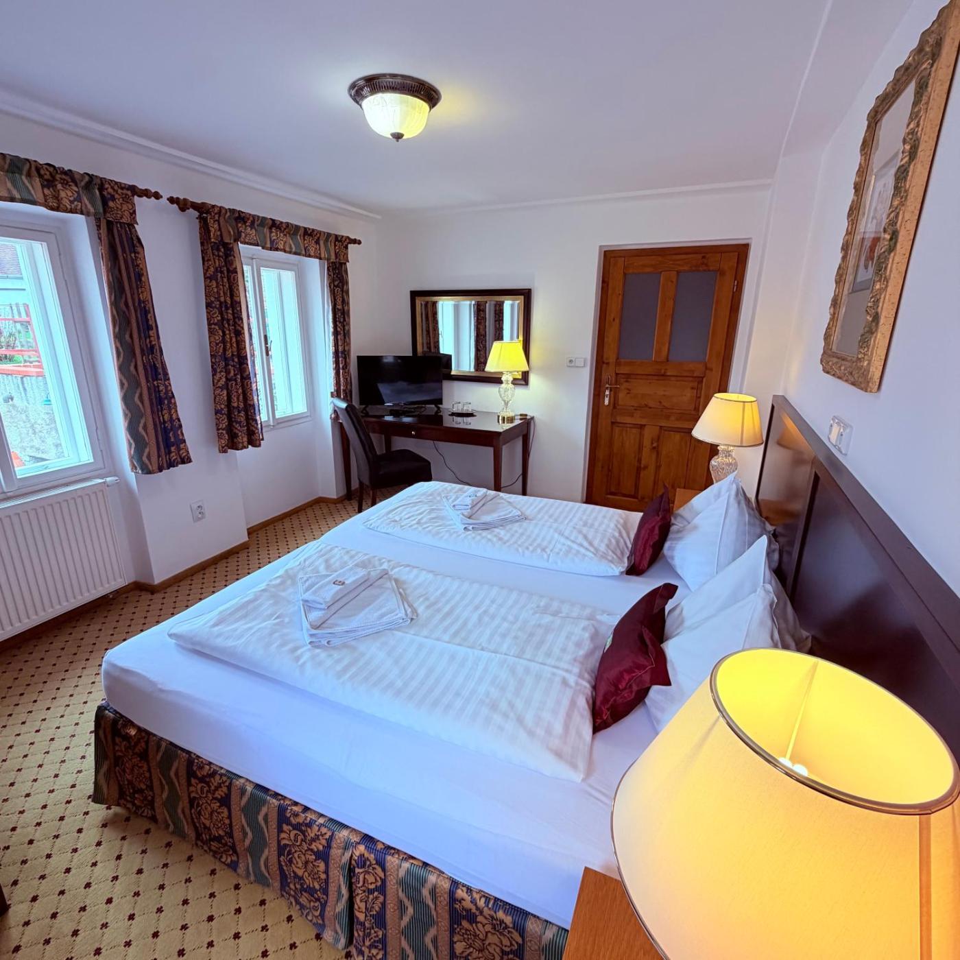 Set in Cesky Krumlovs historical centre, Penzion Kapr is located in 2 historical buildings 400 metres away from the castle and St. Vitus Church.rooms are en-suite and non-smoking. They overlook Vltava River and the centre and feature a flat-screen TV.