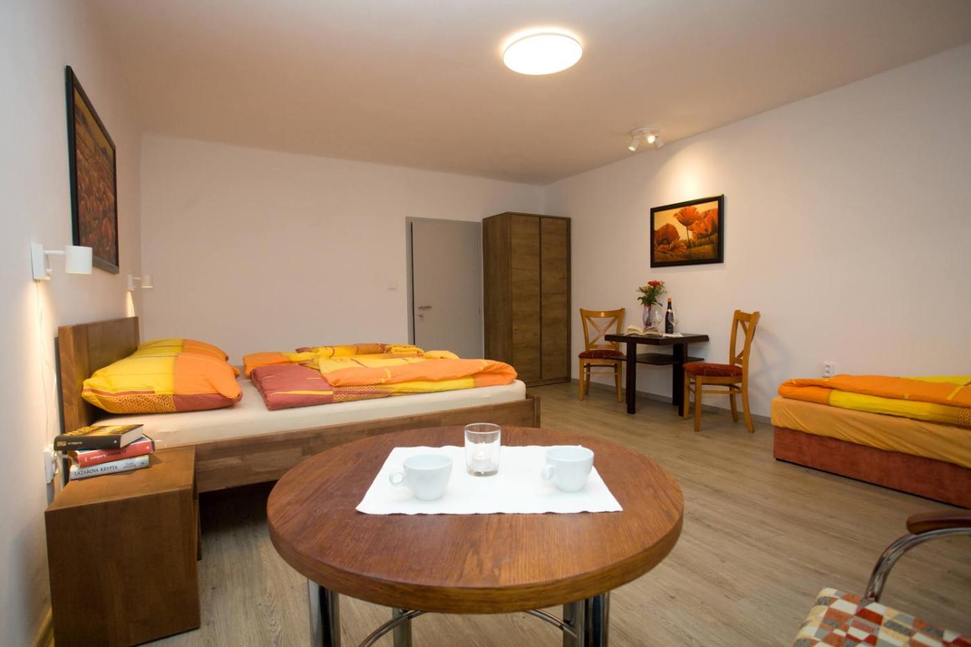 Offering a shared lounge and garden view, apartmany Zak is located in Frymburk, 25 km from Český Krumlov Castle and 48 km from Přemysl Otakar II Square. This apartment provides free private parking, a shared kitchen and free WiFi. Featuring family rooms, this property also provides guests with a terrace.