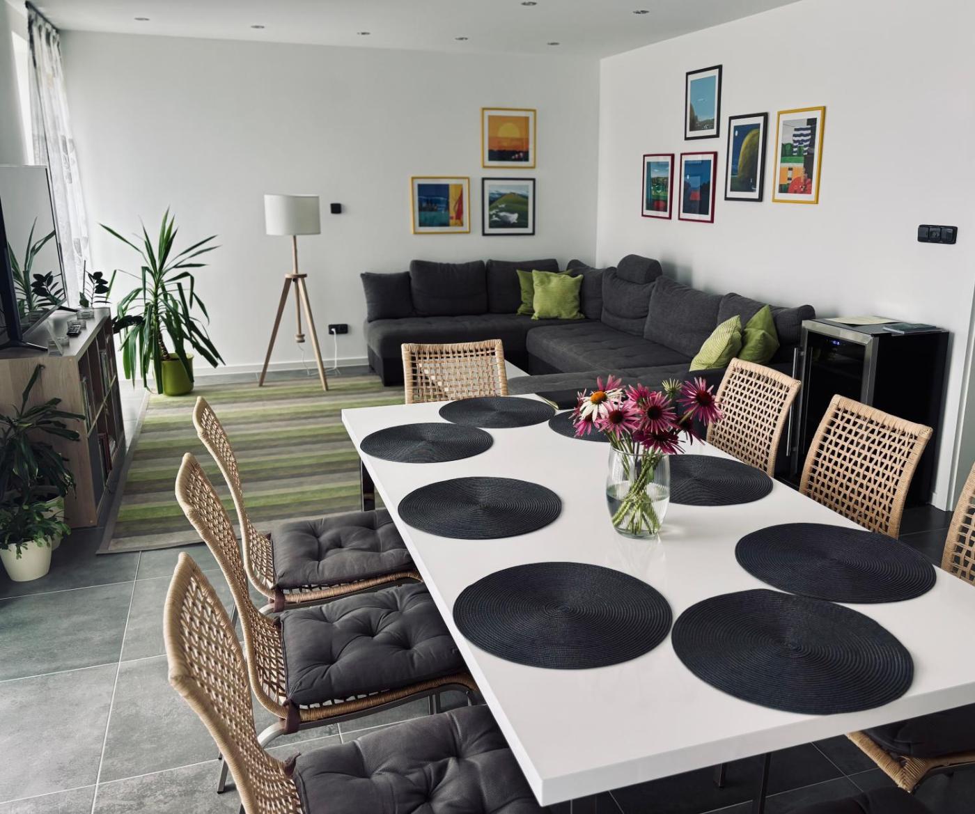 Apartment. This spacious apartment comprises 1 living room, 4 separate bedrooms and 2 bathrooms with a walk-in shower and free toiletries. Guests will find a stovetop, a refrigerator, a dishwasher and kitchenware in the kitchen. The apartment also provides guests with a barbecue. The apartment features a washing machine, a private entrance, soundproof walls as well as a terrace with lake views. The unit offers 8 beds.