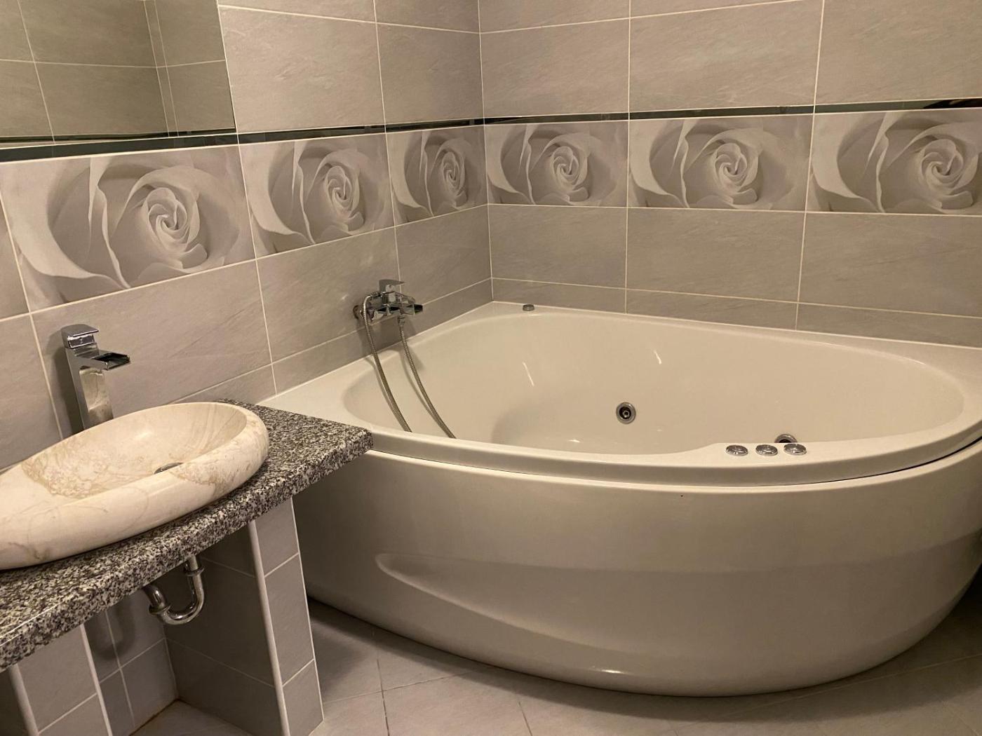 Suite with Spa Bath. This suite is comprised of 1 living room, 2 separate bedrooms and 1 bathroom with a bath and free toiletries. The suite features carpeted floors, a seating area with a flat-screen TV, soundproof walls, a minibar, as well as a tea and coffee maker. The unit offers 4 beds. ;
