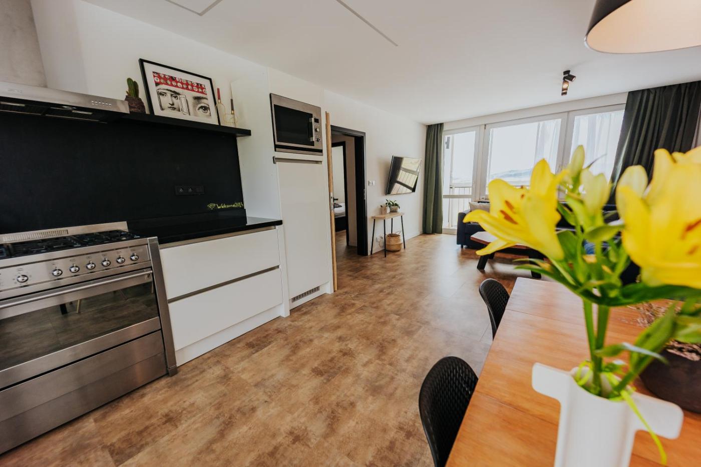 The spacious apartment with a balcony and garden views has 2 bedrooms, a living room, a flat-screen TV, an equipped kitchen with a dishwasher and an oven, and 1 bathroom with a walk-in shower. Towels and bed linen are offered in the apartment. For added privacy, the accommodation has a private entrance and soundproofing.