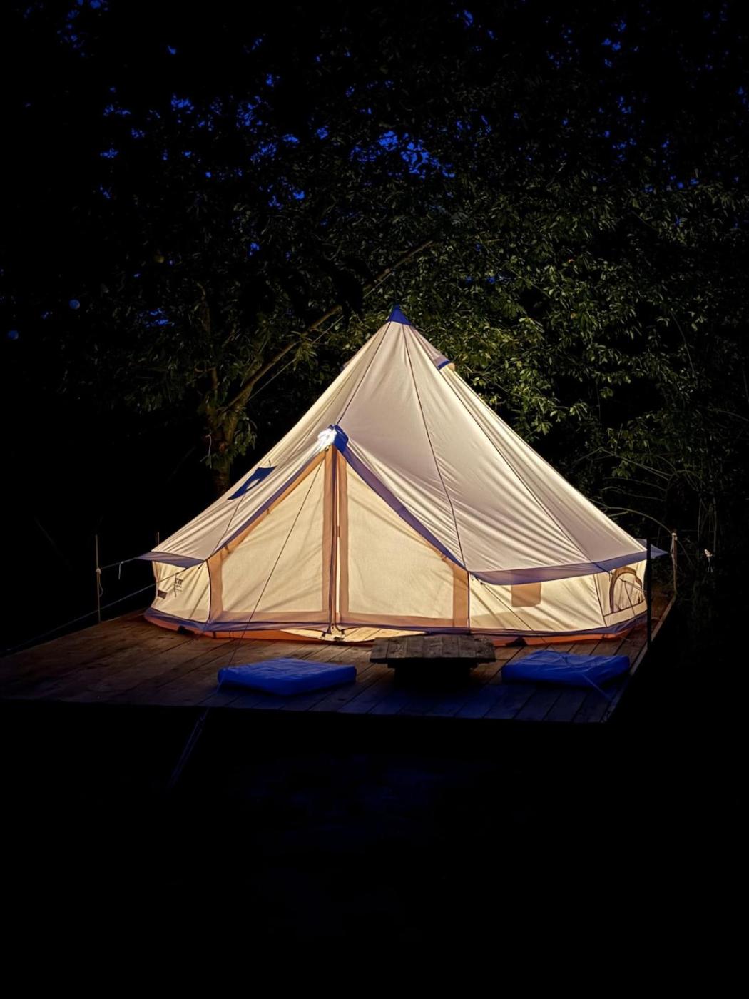 Tent. Guests will find kitchenware in the kitchen. The tent also provides guests with a barbecue. The tent provides a private entrance, a tea and coffee maker, a terrace with garden views as well as a private bathroom featuring a shower. The unit offers 2 beds.