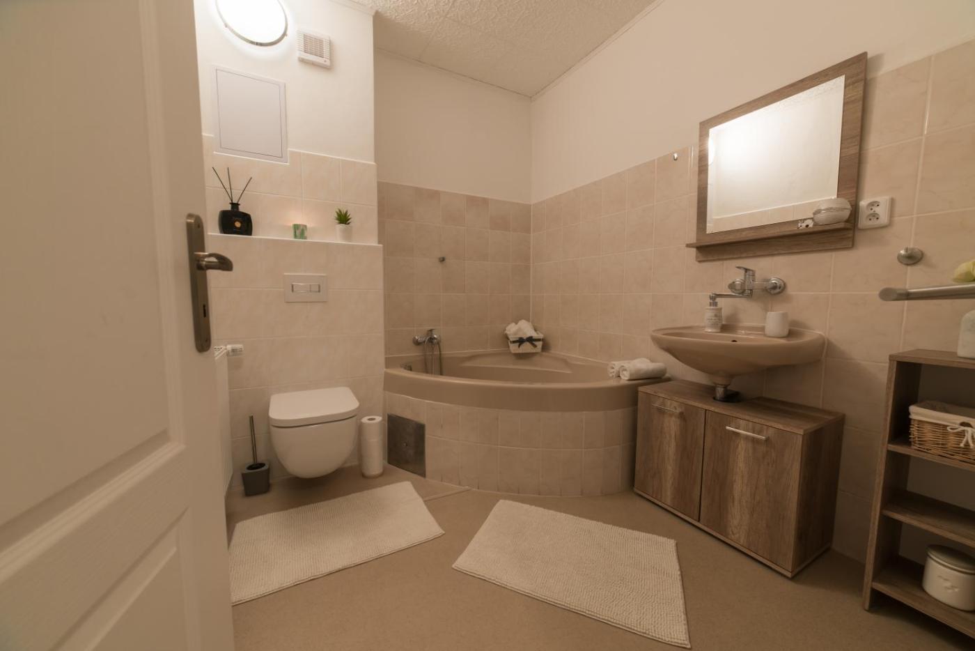 Two-Bedroom Apartment. The spacious apartment features 2 bedrooms and 1 bathroom with a bath and free toiletries. Meals can be prepared in the kitchen, which is equipped with a stovetop, a refrigerator, a dishwasher and kitchenware. A seating area with a flat-screen TV, a tea and coffee maker and an outdoor dining area are provided in this apartment. The unit offers 6 beds.