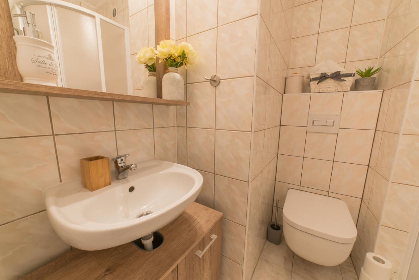 One-Bedroom Apartment. This apartment comes with 1 living room, 1 separate bedroom and 1 bathroom with a shower and free toiletries. In the well-equipped kitchenette, guests will find a stovetop, a refrigerator, kitchenware and a microwave. Boasting a terrace with garden views, this apartment also features a tea and coffee maker and a flat-screen TV. The unit has 2 beds. ;