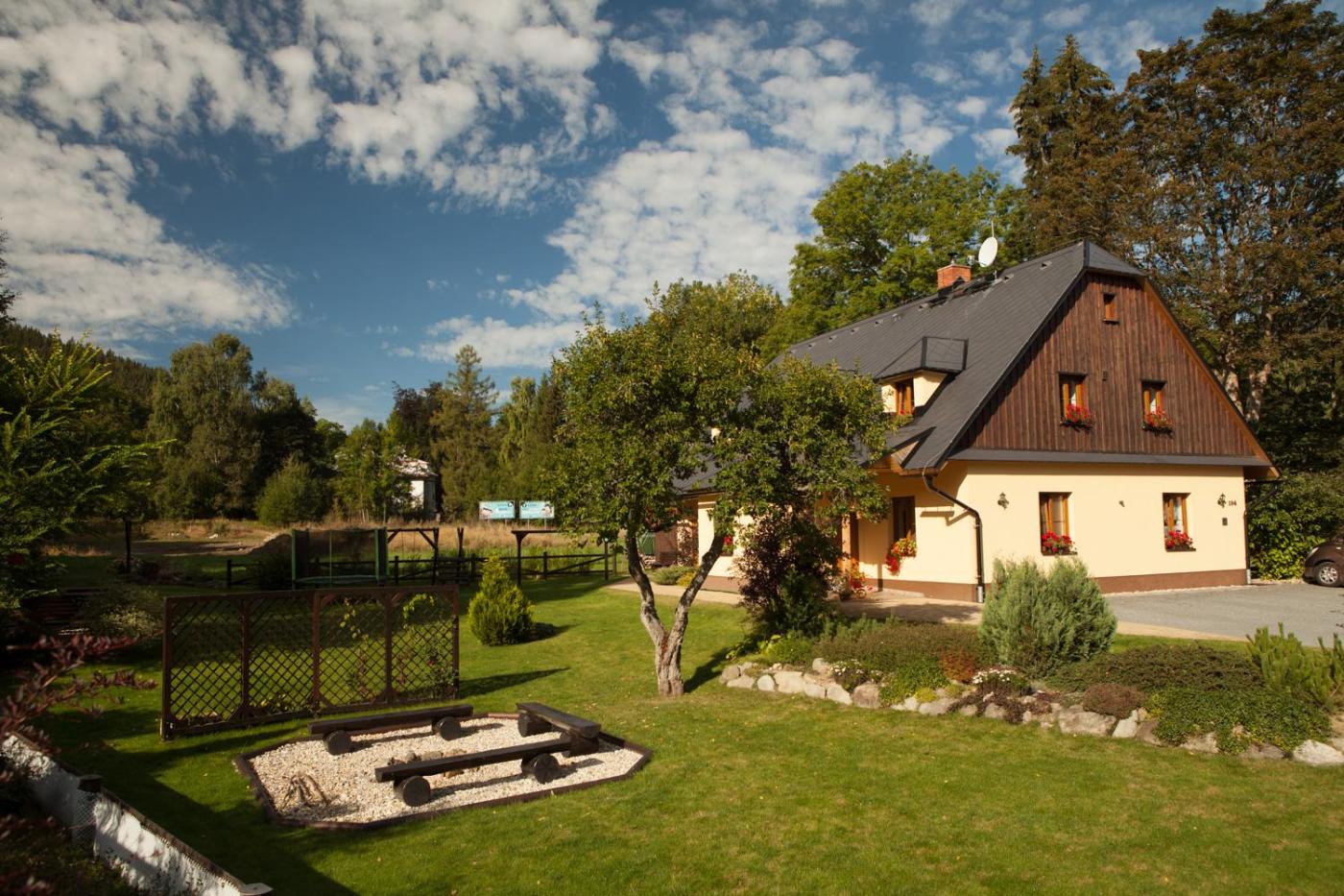 Located in Malá Morávka, 16 km from Praděd, Penzion pod Stráni has ski-to-door access, private parking and rooms with free WiFi access. The property features garden views and is 45 km from Museum of Paper Velké Losiny. Featuring family rooms, this property also provides guests with an outdoor fireplace.