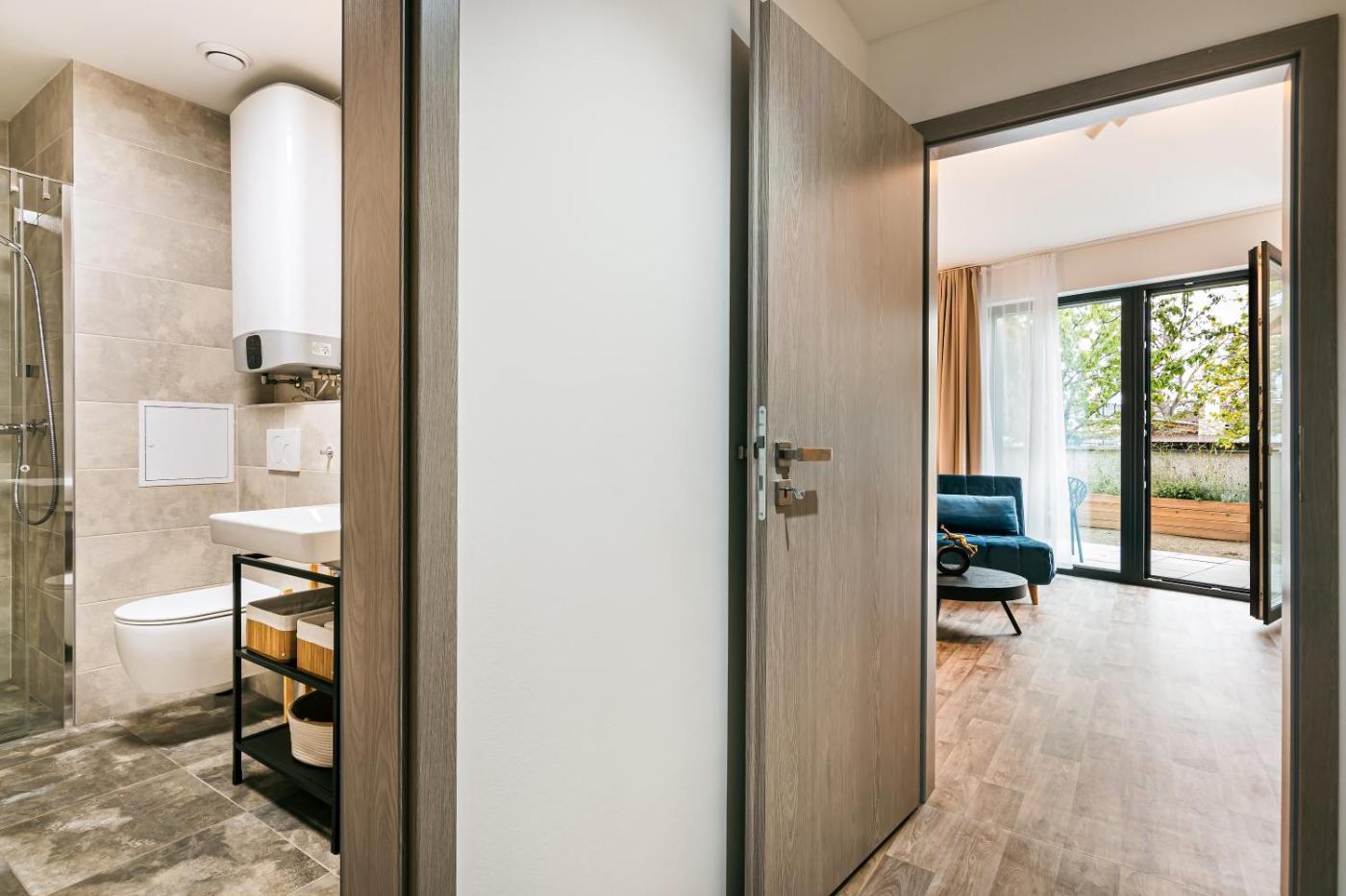 One-Bedroom Apartment. This apartment comes with 1 living room, 1 separate bedroom and 1 bathroom with a walk-in shower and free toiletries. The fully equipped kitchen has a stovetop, a refrigerator, kitchenware and an oven. Boasting a terrace with garden views, this apartment also features air conditioning and a flat-screen TV with cable channels. The unit has 3 beds.