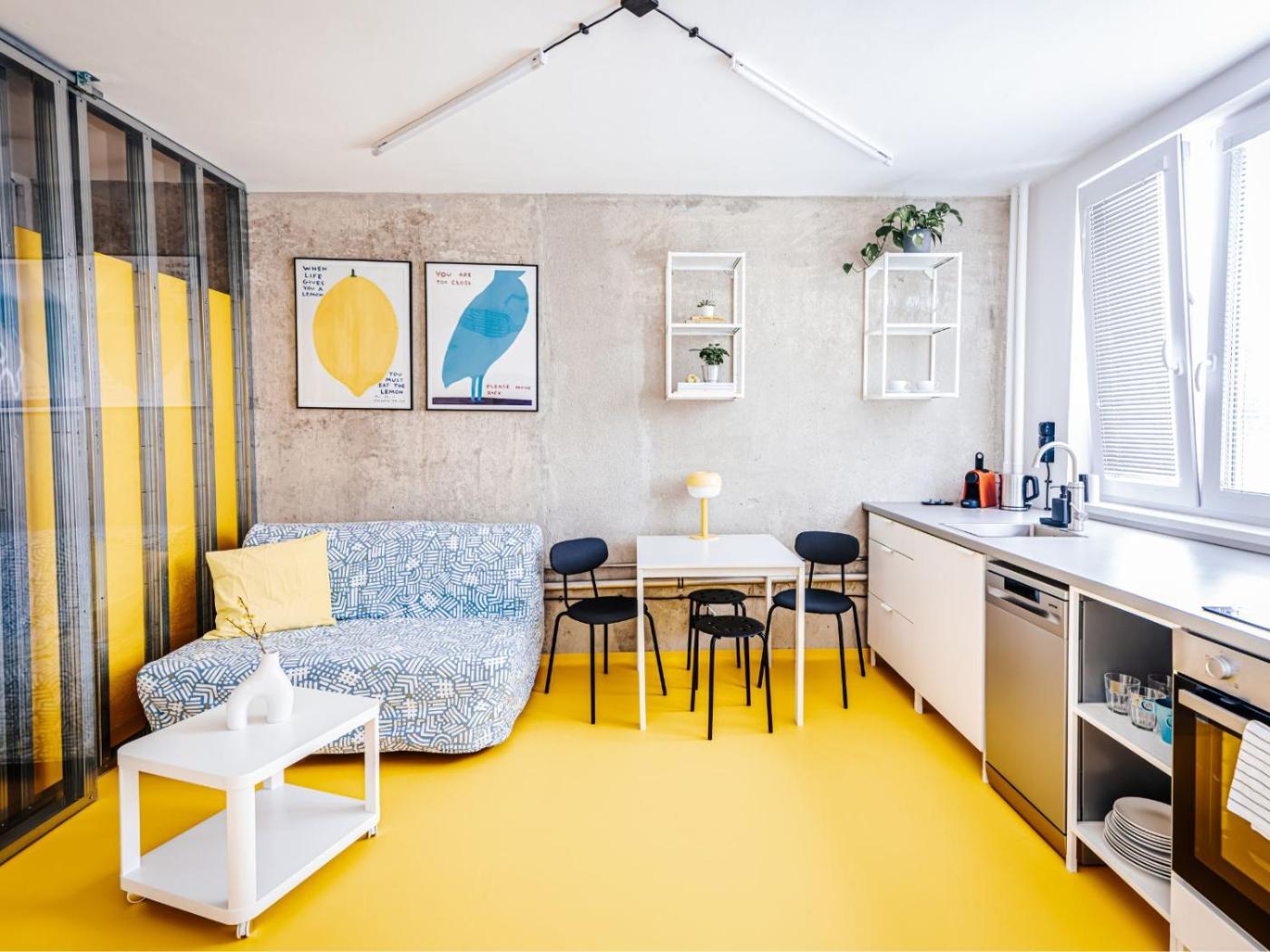 One-bedroom Loft Apartment. This apartment is comprised of 1 living room, 1 separate bedroom and 1 bathroom with a walk-in shower and a hairdryer. In the kitchen, guests will find a stovetop, a refrigerator, a dishwasher and kitchenware. The apartment offers a washing machine, a tea and coffee maker, a seating area, a dining area, as well as a flat-screen TV. The unit offers 2 beds.