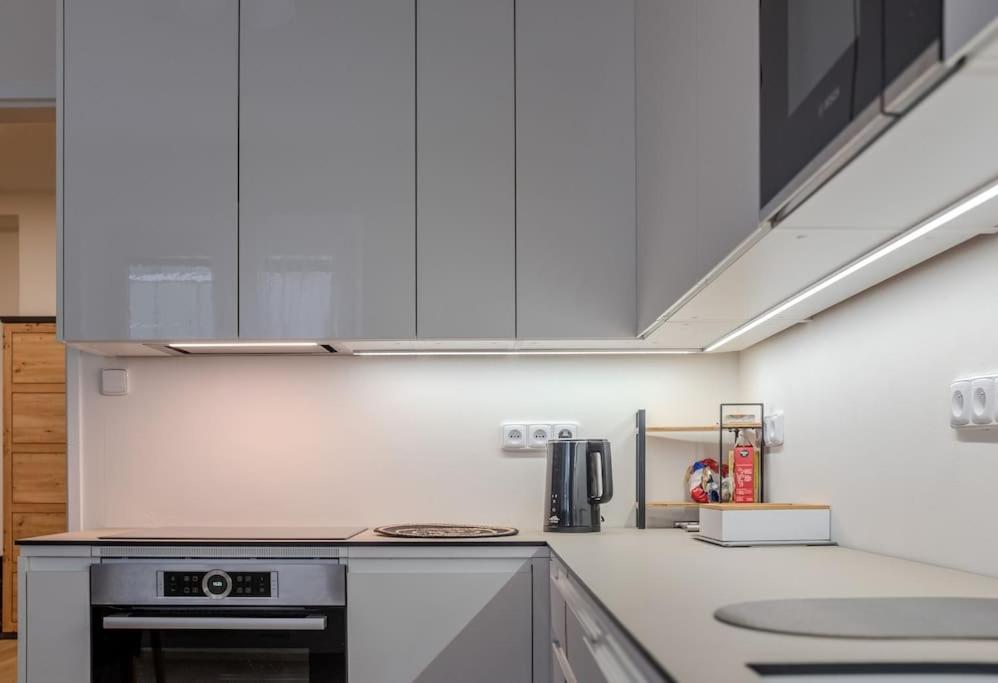 The spacious apartment is equipped with 3 bedrooms, a fully equipped kitchen with a dishwasher and an oven, and 2 bathrooms with a shower, slippers and a washing machine. The apartment offers bed linen, towels and laundry service.