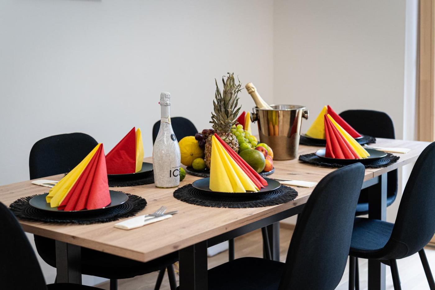 The spacious apartment is equipped with 3 bedrooms, 2 bathrooms, bed linen, towels, a flat-screen TV, a dining area, a fully equipped kitchen, and a terrace with garden views. Guests at this apartment can enjoy wine or champagne and fruits. This apartment is non-smoking and soundproof.