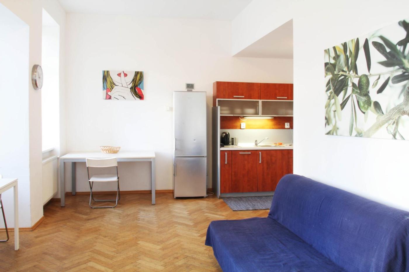 All accommodation units at the Kostnické Square Residence are brightly decorated and feature hardwood floors. A flat-screen TV and a radio are provided in each of the apartments.