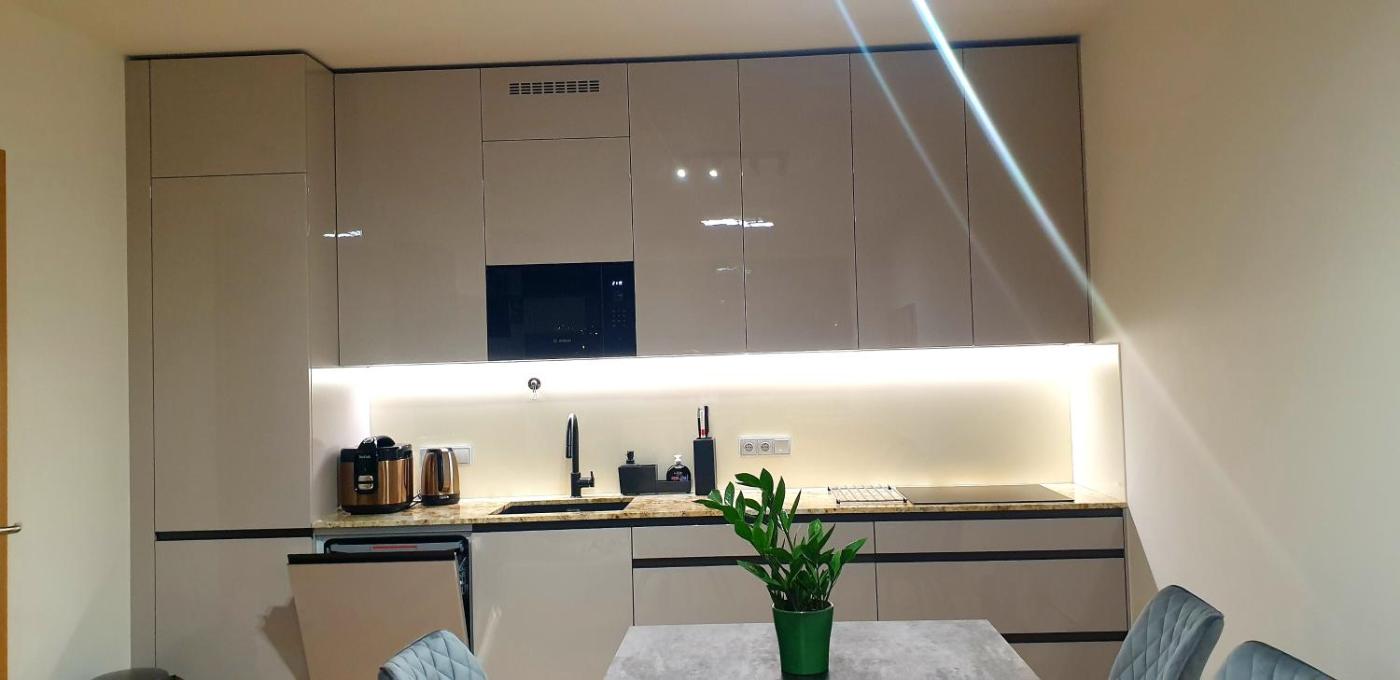 One-Bedroom Apartment. This apartments special feature is the fireplace. This spacious apartment comprises 1 living room, 1 separate bedroom and 1 bathroom with a walk-in shower and bathrobes. The well-fitted kitchen features a stovetop, a refrigerator, a dishwasher and kitchenware. The apartment provides a washing machine, a private entrance, a coffee machine, a flat-screen TV with streaming services, as well as city views. The unit offers 3 beds and 2 futons.