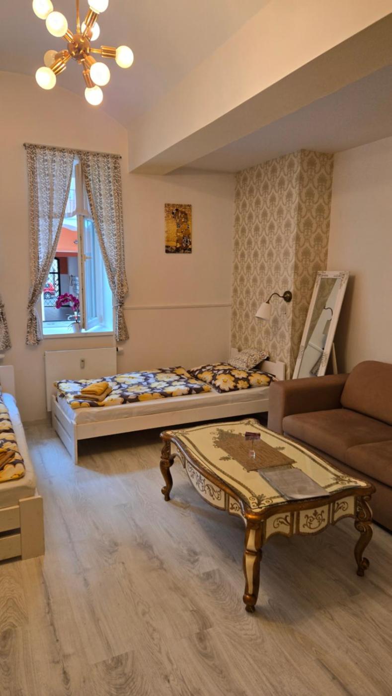 Studio under Vyšehrad Castle II.. This studio features a fully fitted kitchen, private bathroom and seating area with a sofa bed.
