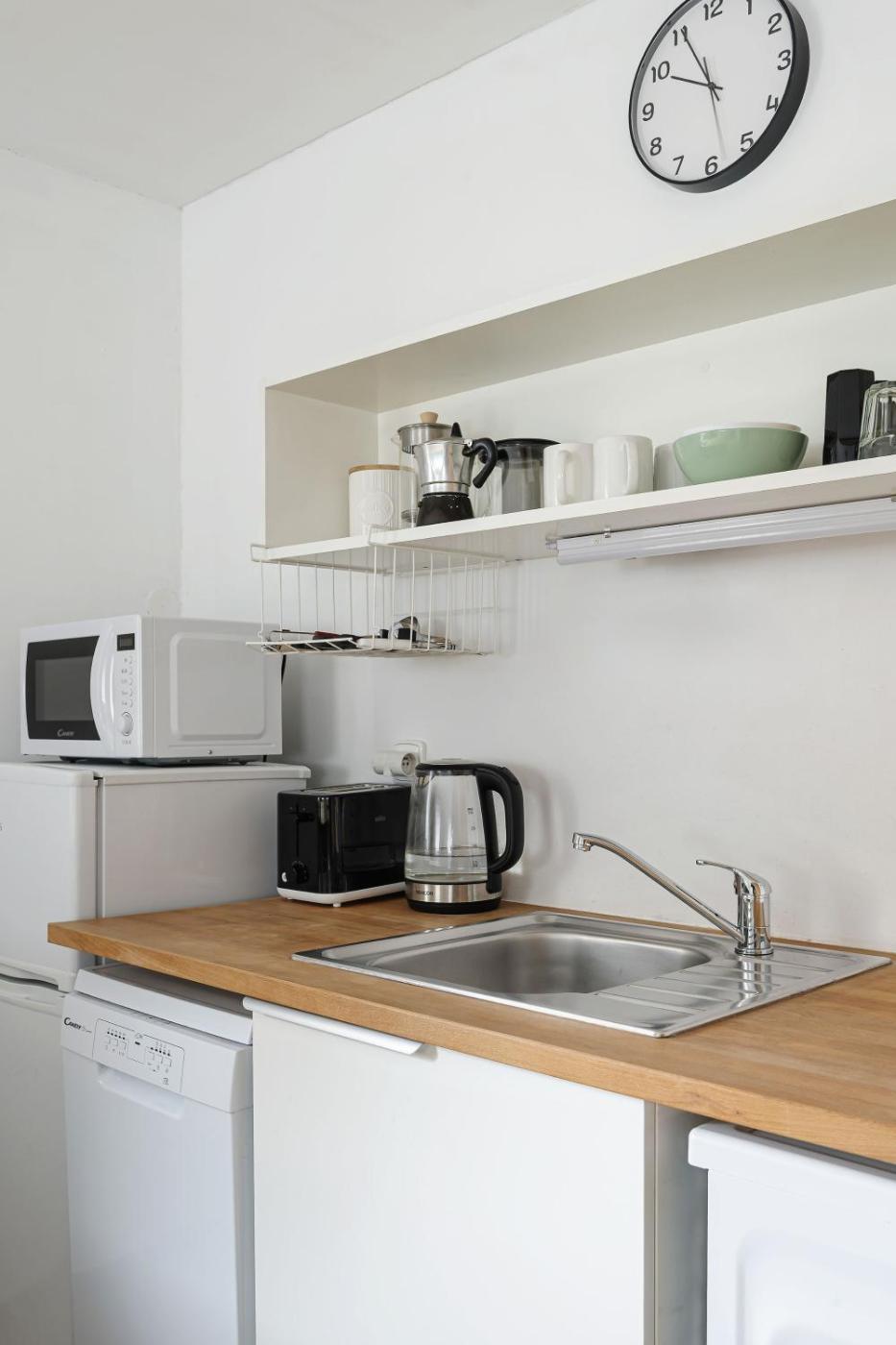 One-Bedroom Apartment. Boasting a private entrance, this apartment also comes with 1 bedroom, a seating area and 1 bathroom with a shower and a hairdryer. Meals can be prepared in the well-fitted kitchen, which features a stovetop, a refrigerator, a dishwasher and kitchenware. Among the room amenities are a washing machine, soundproof walls and a tea and coffee maker as well as garden views. The unit has 1 bed.