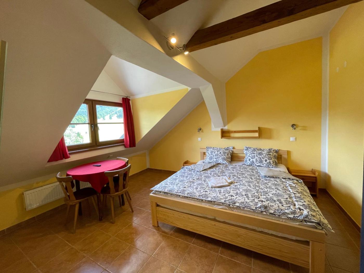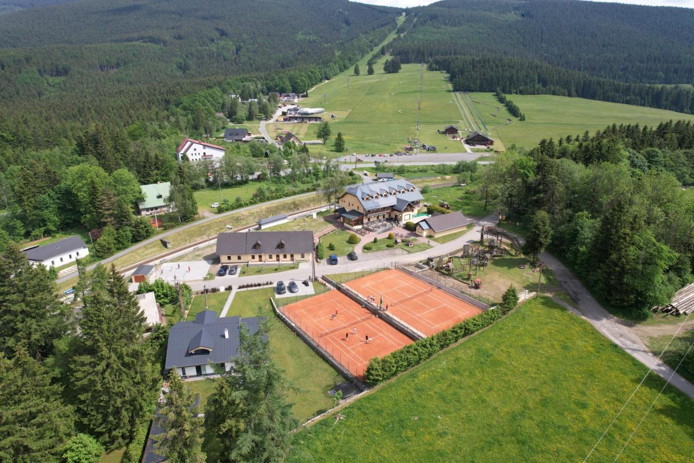 Situated in Ramzová, 26 km from Museum of Paper Velké Losiny, Chata Ramzovské sedlo features accommodation with a garden, free private parking, a shared lounge and a terrace. Featuring a restaurant, the property also has a bar, as well as an indoor pool. The accommodation provides a kids club and free WiFi throughout the property.