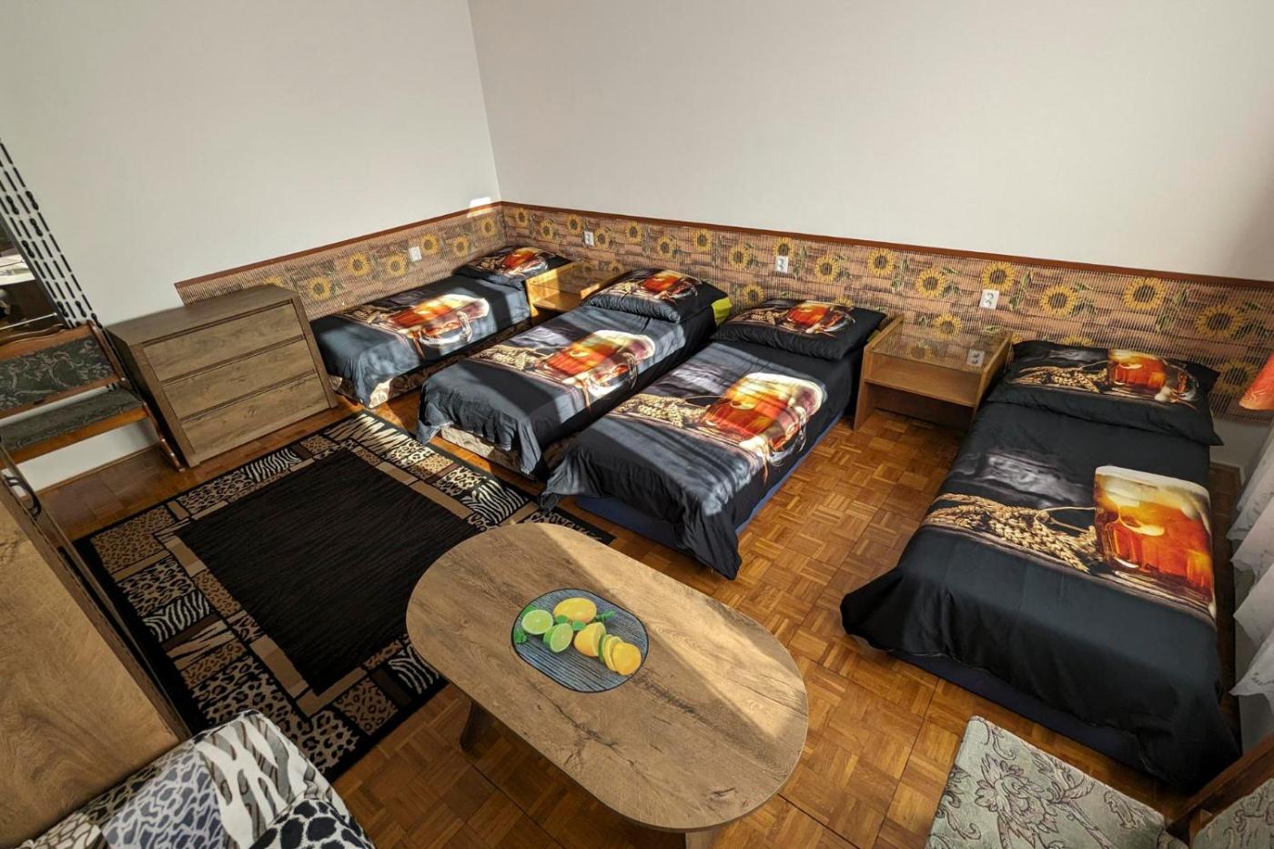 Quadruple Room with Shared Bathroom. The quadruple room offers a washing machine, a tea and coffee maker, as well as a shared bathroom boasting a bath or a shower and a hairdryer. In the well-fitted kitchen, guests will find a stovetop, a refrigerator, kitchenware and an oven. The quadruple room is furnished with a desk and a seating area and provides a wardrobe, parquet floors and city views. The unit has 4 beds. ;