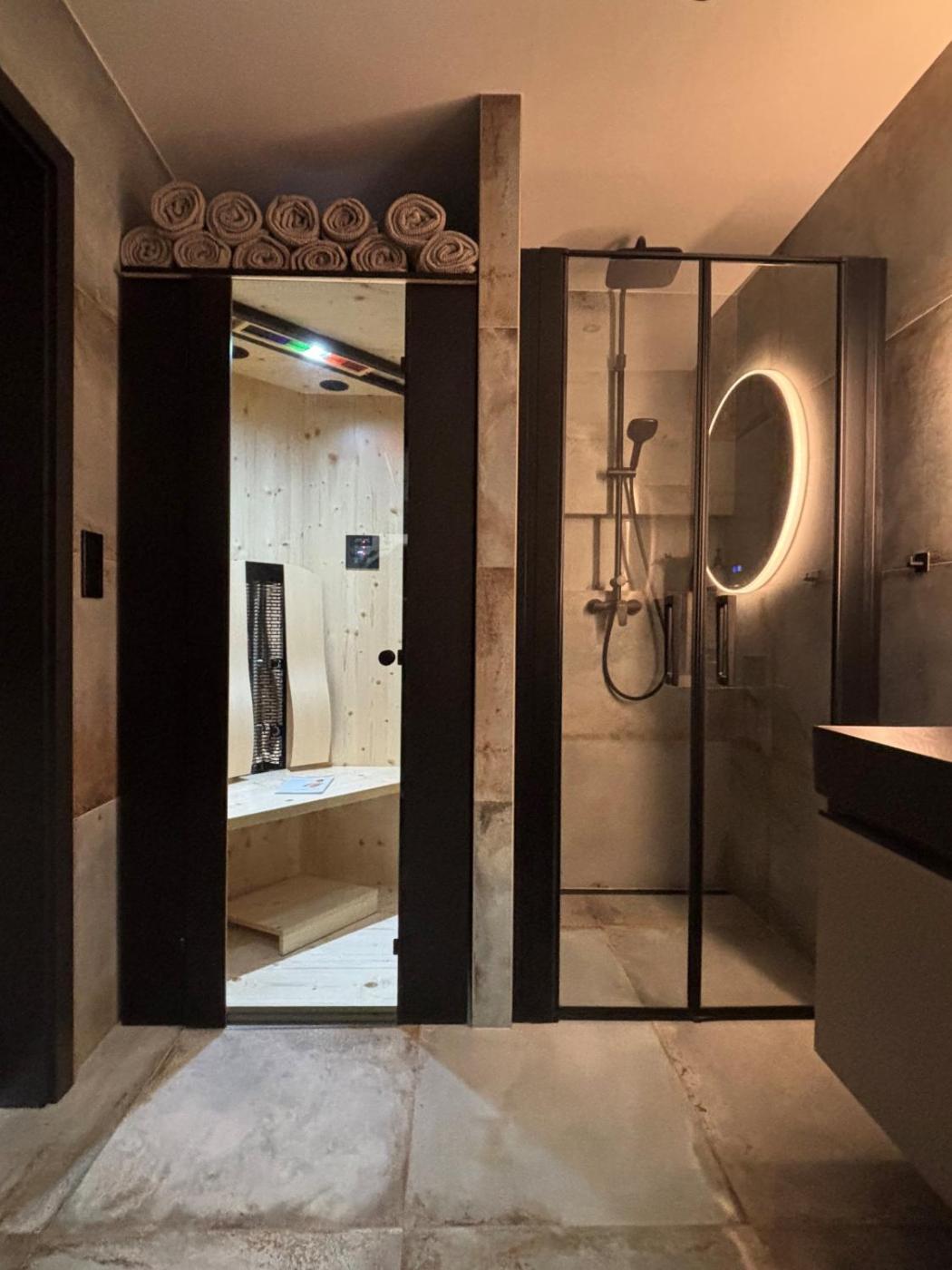 Two-Bedroom Chalet. This chalets special feature is the sauna. This spacious chalet consists of 1 living room, 2 separate bedrooms and 1 bathroom with a shower and free toiletries. Guests can make meals in the kitchen that is equipped with a stovetop, a refrigerator, a dishwasher and an oven. Featuring a terrace with mountain views, this chalet also provides a washing machine and a flat-screen TV with streaming services. The unit offers 3 beds.
