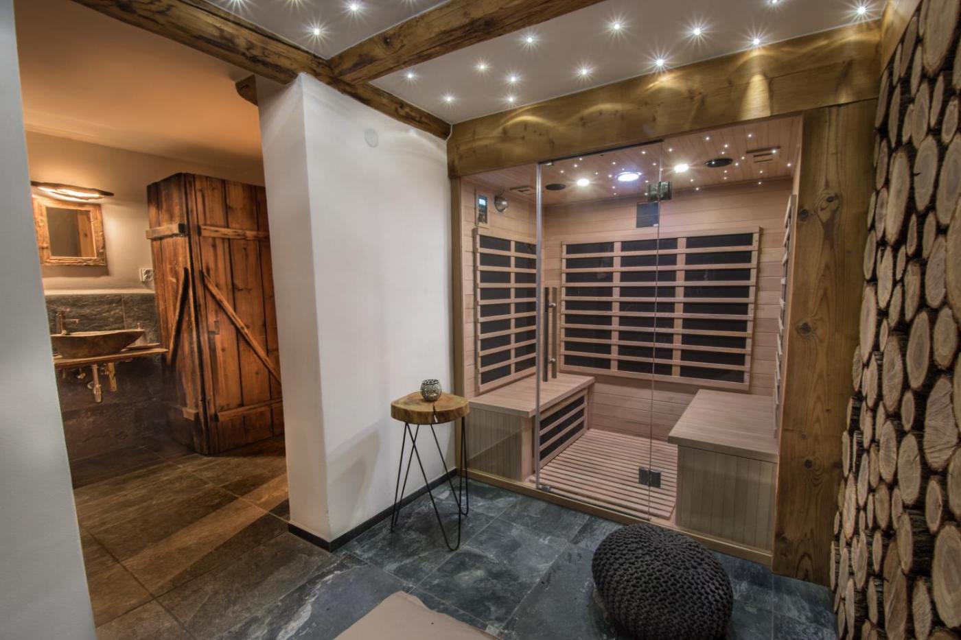 Three-Bedroom Chalet. This chalets standout features are the private pool, hot tub and sauna. This spacious chalet features 1 living room, 3 separate bedrooms and 2 bathrooms with a walk-in shower and free toiletries. Guests will find a stovetop, a refrigerator, a dishwasher and kitchenware in the kitchen. The chalet also comes with a barbecue. The chalet features a washing machine, a private entrance, a tea and coffee maker, a flat-screen TV, as well as garden views. The unit has 7 beds.