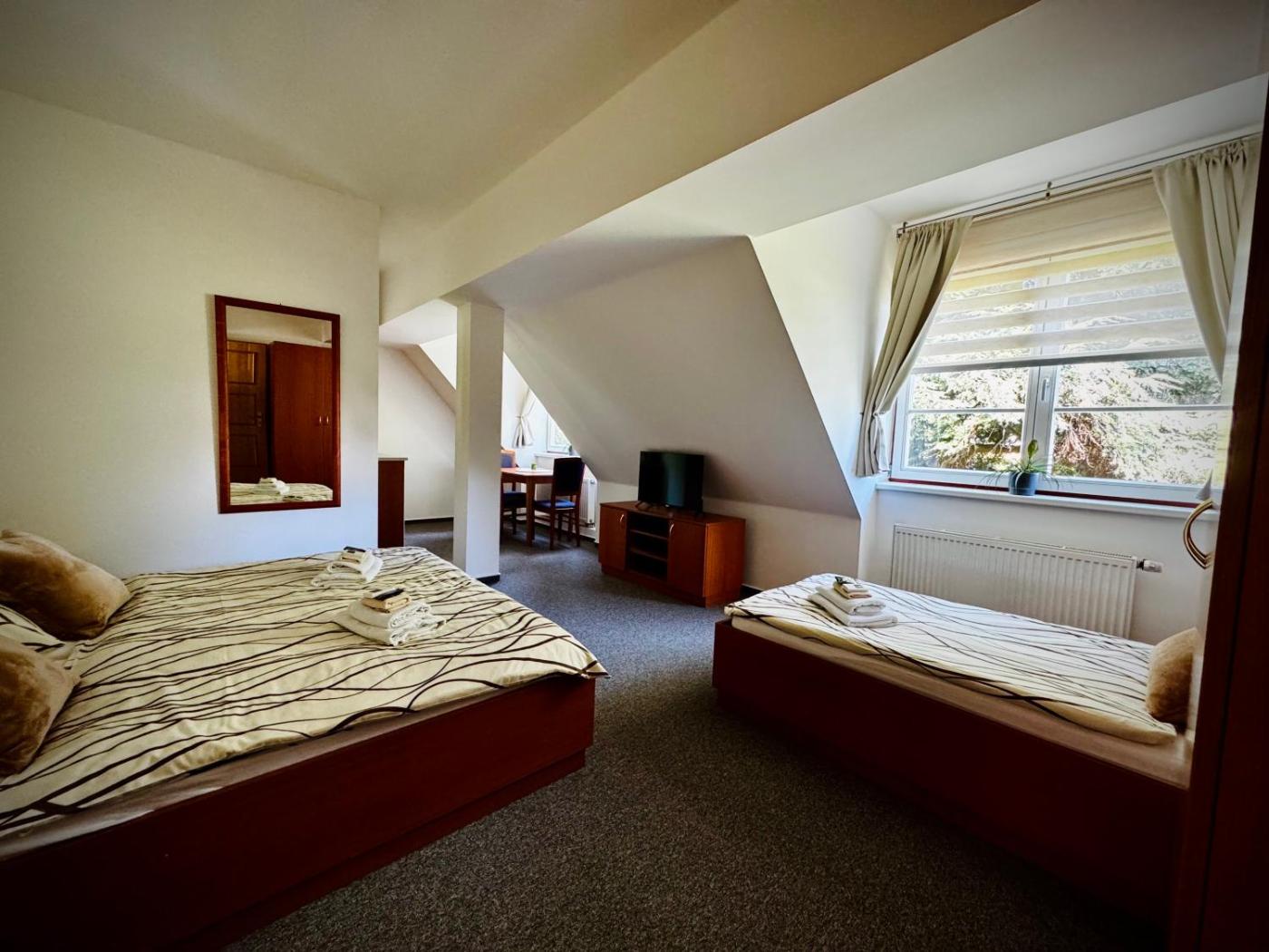 Featuring 3-star accommodation, Penzion G is located in Šumperk, 10 km from Museum of Paper Velké Losiny and 38 km from Bouzov Castle. Among the facilities at this property are a lift and a housekeeping service, along with free WiFi throughout the property. The guest house features family rooms and facilities for disabled guests.