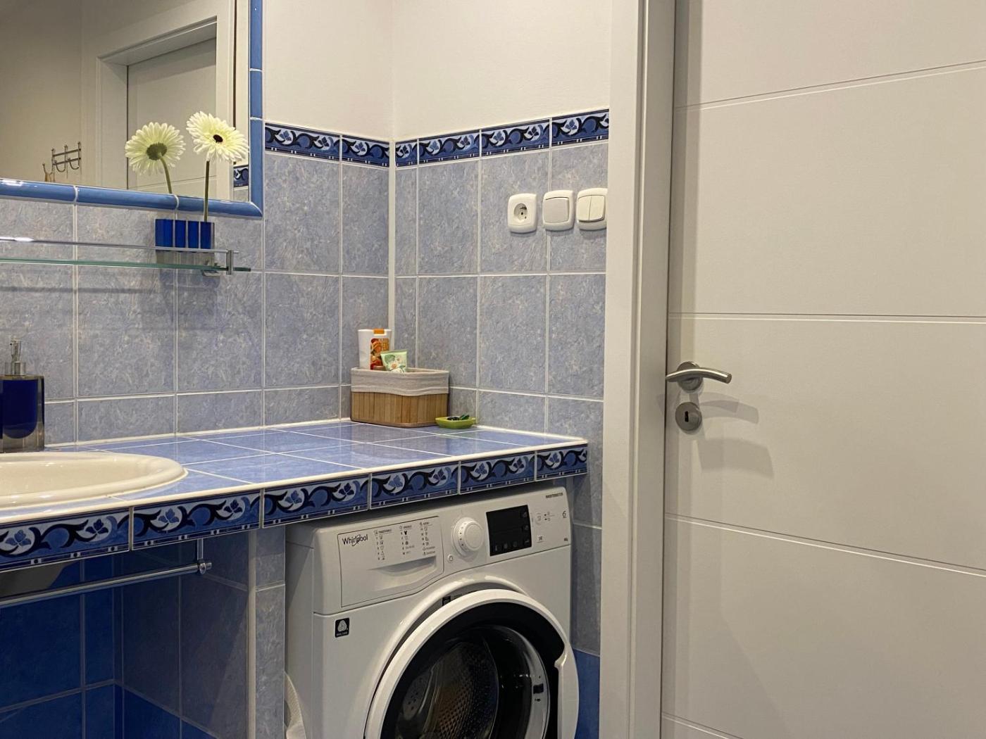 One-Bedroom Apartment. This apartment is comprised of 1 living room, 1 separate bedroom and 1 bathroom with a bath and free toiletries. In the well-fitted kitchen, guests will find a stovetop, a refrigerator, kitchenware and an oven. The apartment features a washing machine, a tea and coffee maker, a wardrobe as well as a balcony with mountain views. The unit offers 2 beds.