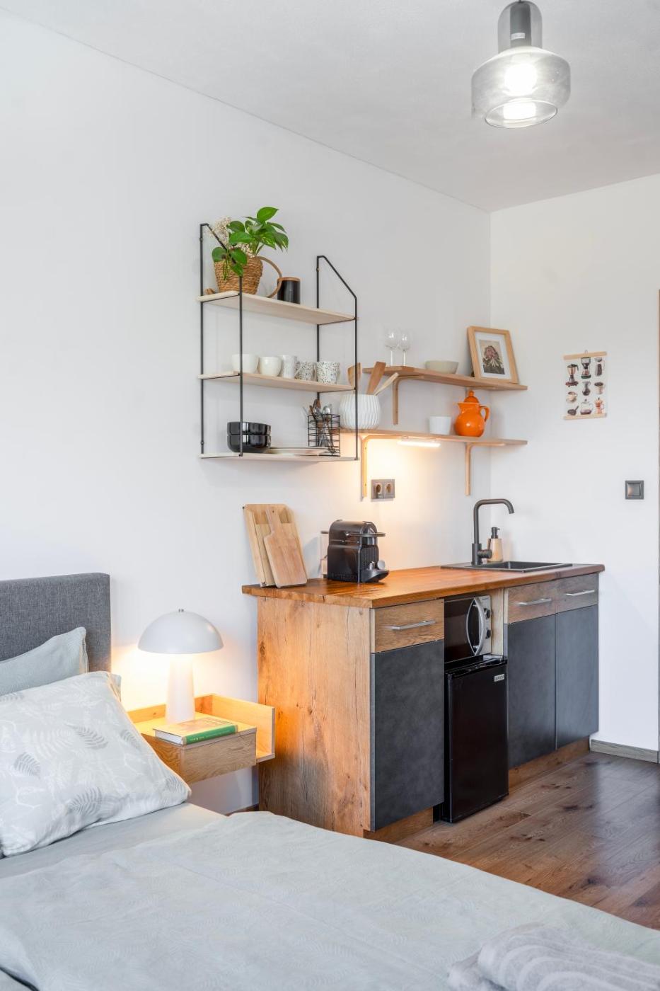 Studio. The studio provides a minibar, a tea and coffee maker, as well as a private bathroom featuring a shower and a hairdryer. Meals can be prepared in the well-fitted kitchenette, which comes with kitchenware, a microwave and a toaster. The studio features a wardrobe, heating and mountain views. The unit offers 1 bed. ;