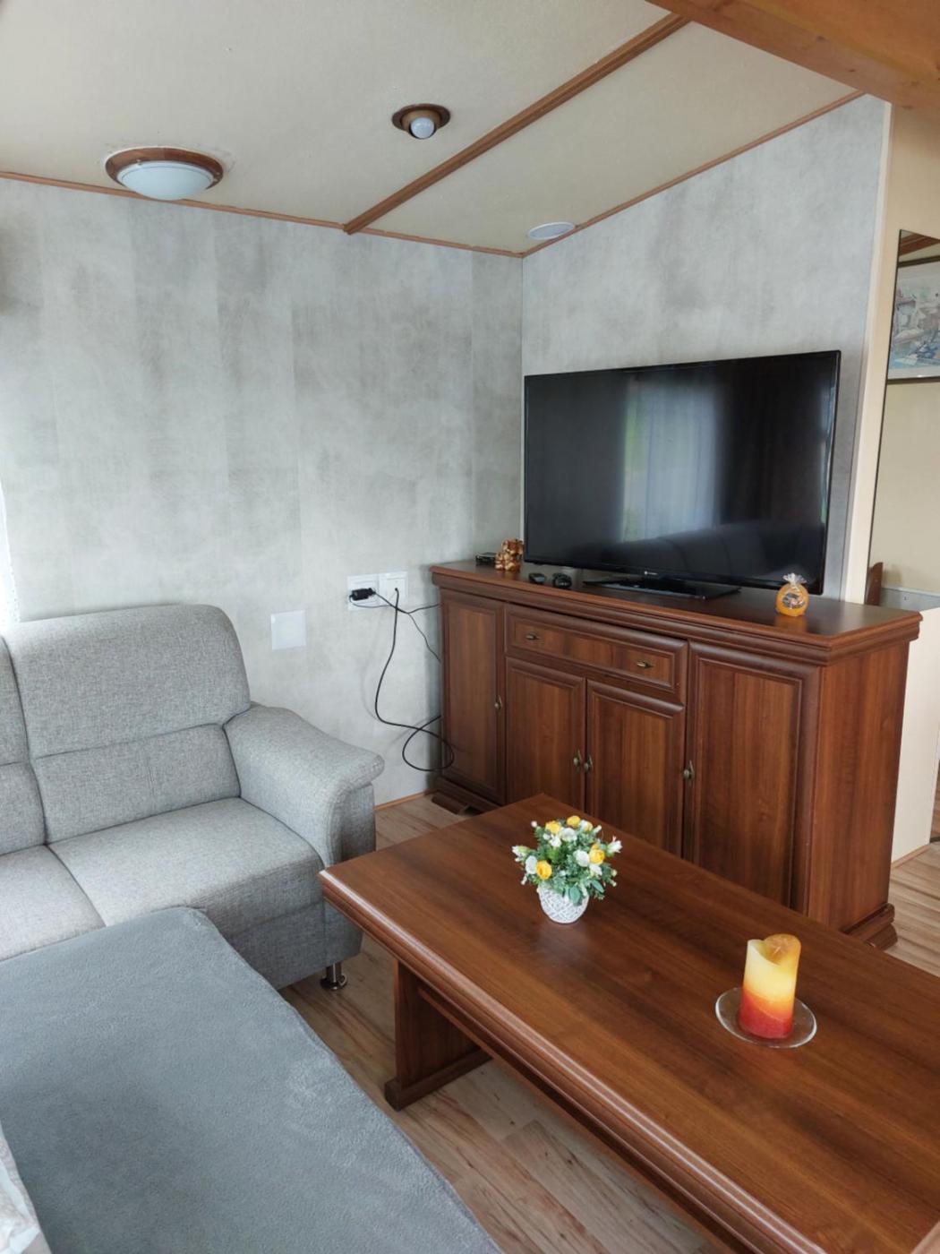 Mobile Home. This mobile home comes with 1 living room, 2 separate bedrooms and 1 bathroom with a shower. Guests will find a stovetop, a refrigerator, kitchenware and a microwave in the well-equipped kitchen. The mobile home also includes a barbecue. Boasting a terrace with lake views, this mobile home also features a tea and coffee maker and a flat-screen TV. The unit has 3 beds.